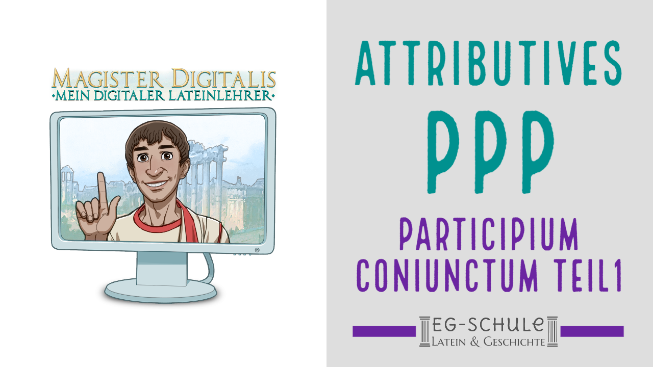 Einführungsvideo zur attributiven Übersetzung des Partizip Perfekt Passiv. Hierin geht es um die wörtliche Übersetzung und die Übersetzung mit Relativsatz beim Participium Coniunctum.